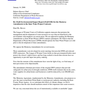 Draft environmental impact report (draft EIR) for the Monterey amendments to the State Water Project contracts