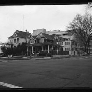 Street scene at the northwest corner at 2029 Capitol Avenue and 21st Streets showing the doctor's offices of Richard Schofield and Harold Schwing.