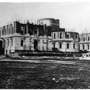 Copy print of showing the California State Capitol building under construction during the 1860s