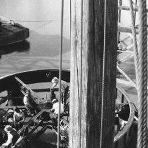 Workers are busy on a bridge pier under construction. This is the pier that rotates the bridge for boats to pass. Barge visible - from Nystedt, Stockton.