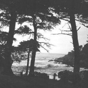 The dark shapes of a cypress forest dominate this composition with the ocean and some breakers seen through the trees in the center, right. Probably taken somwhere near Monterey.