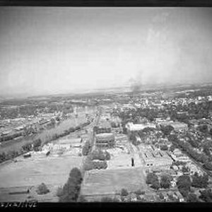 Aerial Sacramento - 1955 - River south of downtown over PG&E natural gas storage tank.. 11 of 20