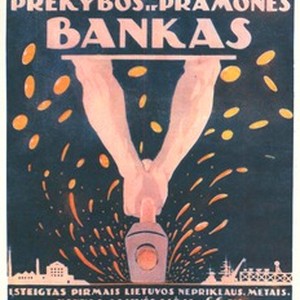 A poster advertising the Lithuanian commercial and industrial bank in Kaunas, Lithiania. In Lithuanian. Caption on top reads, "Lietuvos prekybos ir pramonės bankas", meaning " Lithuanian Commercial and Industrial Bank". [Description English/roman)]