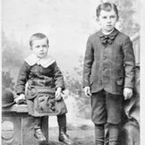 Photo--black and white, Cabinet Card: Two young unidentified boys in a studio photo. Photograph by Piggott & Shaw, Santa Rosa, California. Cabinet card approximate date circa 1866-1879