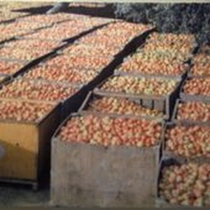 Photo--Color, matted: Sebastopol Apple Growers Union bins full of Gravenstein apples.