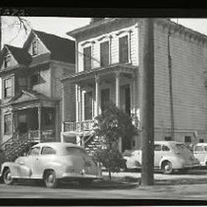 Late 19th - early 20th century houses and street scene in unidentified location; probably Sacramento