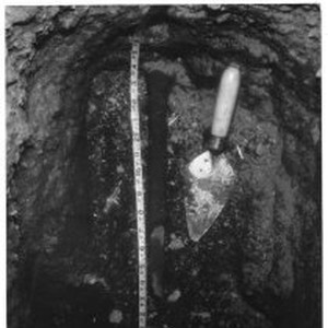 Photograph of wrought iron handle of frying pan found at Bolinas Lagoon, 1978