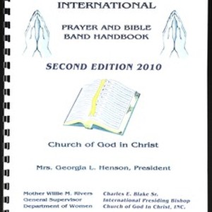 Georgia L. Henson. International prayer and bible band handbook. 2nd edition. Memphis, Tennessee: Church of God in Christ (COGIC), 2010. Printed by SWR3B Printing (Indianapolis, Indiana). [Description English/roman)]