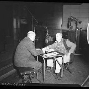 Charlie Marshal and E.H. Spoor of Berkeley, State Director Production Marketing Administration, USDA in front of microphone.