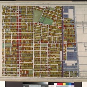 WPA Land use survey map for the City of Los Angeles, book 8 (Downtown Los Angeles and Hyde Park to Watts District), sheet 11. Includes: [Title page and] legend [for Book] no. VIII Composite index to Land use map books [for Book 8] Index to Book no. 8. Land use survey - City of Los Angeles. Department of City Planning. These maps were prepared with the assistance of the Works Progress Administration project no. 665-07-G-226 through 1939 to 1940. The land use data contained herein was compiled from a survey made with the assistance of the Civil Works Administration project no. 642, State Emergency Relief Administration project nos. 1-F2-318 and 1-F2-318A and Works Progress Administration project nos. 65-3-4377, 1101-2011 and 465-03-3-106. This survey functioned from Dec. 18, 1933 to May 8, 1939 and covers approximately 460 square miles within the boundary of the City of Los Angeles. It includes 347 colored drawings bound in 10 volumes of which this is no. VIII. The land use survey was supervised by the Zoning Engineer. The land use maps were supervised by the Illustrative Planning Engineer for the Sponsoring Department.