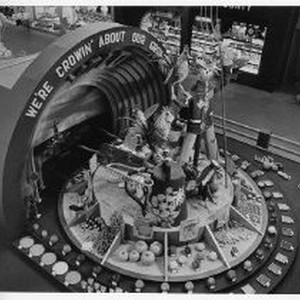 An elevated view of Yolo County's exhibit booth at the California State Fair. This was the last fair held at the old fair grounds
