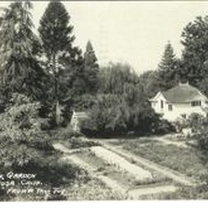 Postcard--black and white: Burbank Garden Santa Rosa, Calif "air view" from a tree top. Back has handwritten note from Joseph B. Keil to Bregger family in South Carolina. Postmarked 1954.