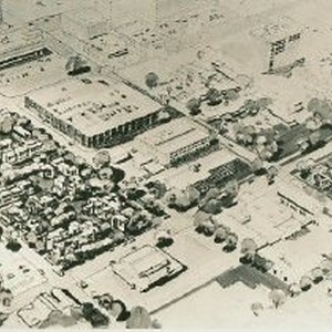 Artist's rendering of buildings in the Governor's Square Residential Project. This is an elevated view that includes several square blocks surrounding the project as well. Developer is Robt. Powell.