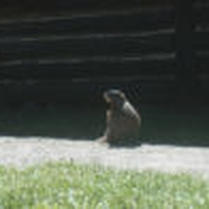 A hoary marmot "whistling" on the ground next to Jenny Lake Lodge.