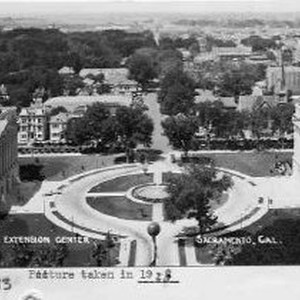 Capitol Extension Center - fountain and circular drive between California State Library and Treasurer's Building