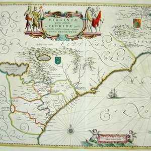 Kashnor dates ca. 1630. Cumming dates 1638. A comparison with van der Krogt and Burden shows that the author is Jansson, not Blaeu, and was published in an edition of his Novus atlas between 1630 and 1675. Cartouche: Indian figures. Prime meridian: Ferro. Relief: pictorial. Graphic Scale: Milliaria? Projection: Cylindrical. Printing Process: Copper engraving. References: Burden 254; Cumming 42; Van der Krogt, map 9400:1B Verso Text: MS note: 595.