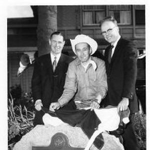 Dr. Albert Shumate, Director of the California Heritage Council, James A. Millholland, Vice Chairman of the San Francisco-Sacramento Pony Express Re-Run Committee and Roy S. Bloss, author of several Pony Express books at the dedication of the commemorative plaque celebrating the centennial of the Pony Express in 1960