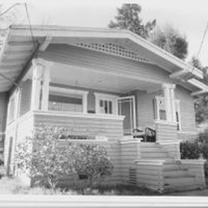 Photo, black and white: Sebastopol house at 568 North Main Street a bungalow built in 1915. House photographed in 1993 by Evelyn McClure for her book "Sebastopol, California : History, Homes and People."