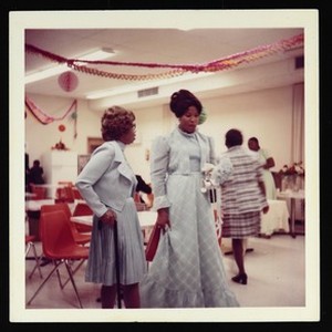 Photograph of Dean Ella Mae Lashley and Davie Simmons at wedding reception, [s.d.]. Clay Johnson (not pictured) was Davie Simmons husband, [s.d.]. [Description English/roman)]