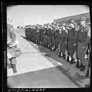 Military - Platoon standing at attention.
