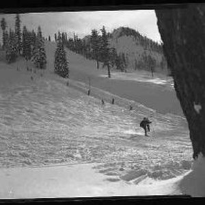 SERIES of five 4 X 5 prints mostly of people snow skiing in various areas of the Squaw Valley resort. One print is of Lake Tahoe in winter with snow covered rocks in the foreground.