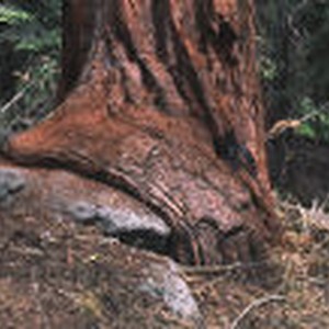 Sequoia "eating" rock on Congress Trail.