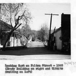 Looking East on Fulton Street (Brady Building on right and Tibbits dwelling on left), 1948