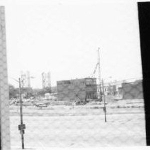Unknown Location near 4th and J Streets, Photo taken inside bldg. looking through window. Faceing west into Old Sacramento, pre-interstate 5.