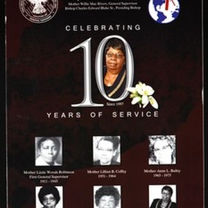 Department of Women Mother Willie Mae Rivers, General supervisor, celebrating 10 years of service, since 1997, 2007. [Description English/roman)]