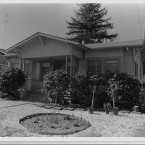 Photo, black and white: Sebastopol house at 452 Bonnardel Avenue a Craftsman built in about 1920 in the Bonnardel Addition. House photographed in 1993 by Evelyn McClure for her book "Sebastopol, California : History, Homes and People."