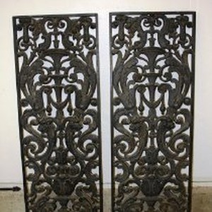 One of a pair of cast-iron grilles, removed from the Native Sons of the Golden West Hall, building entrance, located at 1100 J Street, at the time of its demolition, c. 1960s, 1970s