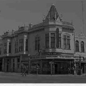 An exterior view of the Grey Pharmacy at 401 K Street and street scene.