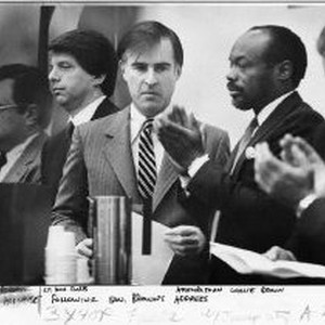 "Speaker Willie Brown, right, applauds Gov. Brown's state-of-the-state address." Lt. Gov. Mike Curb at his right.