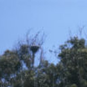 Herons and their nests in trees at Fairbanks Point.