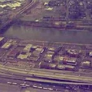 Aerial photograph looking over 1-5, Old Sacramento, and the Tower Bridge.