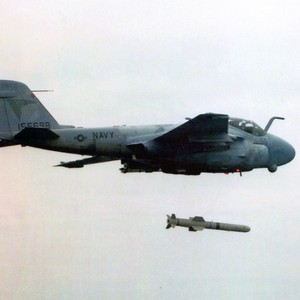 Title:Grumman A-6E Intruder TRAM launching AGM-84 Harpoon US Navy photo - Image from the Ray Wagner Collection. Ray Wagner was Archivist at the San Diego Air and Space Museum for several years and is an author of several books on aviation --- ---Please Tag these images so that the information can be permanently stored with the digital file.---Repository: San Diego Air and Space Museum