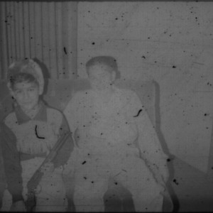 Image / Two unidentified young men (Peters relatives?) in costumes seated on a couch