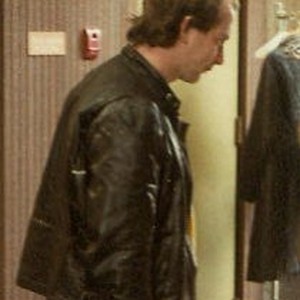 Man wearing black leather jacket and holding skateboard inquires at exhibit information table regarding submitting his work.