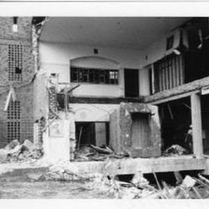 SERIES: 134 black and white prints of the Kit Carson Junior High School Demolition Project at 54th and N Streets in Sacramento. After demolition, the school district constructed the new school on the same site. These views show the buildings before demolition and during, ending with the cleared site.