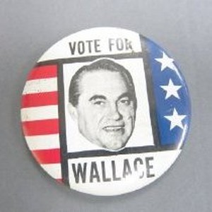 Black text on white background. "Vote for Wallace" w/photo of George Wallace, red stripes & blue stars.