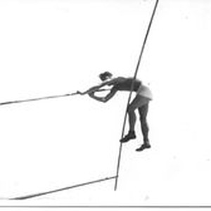 Photo--black and white: Analy High School pole vaulter Kanemi Ono circa 1935. Ono used a bamboo pole as was the standard equipment of the time.