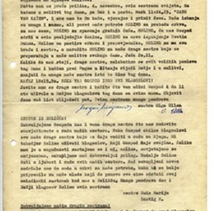 Circular letter for November 1974 containing short announcement and invitation for the day of prayer on November 4, 1974 and a short message from sisters in Belišće. [Description English/roman)] Okružno pismo za studeni 1974. godine koje sadrži najavu i poziv na svjetski dan molitve koji se treba održati 4. studenoga 1974. godine i kratku poruku sestara iz Belišća. [Description (original non-English/roman language/script)]