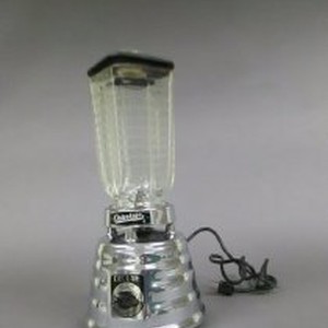 (a) Blender, electric, "Osterizer Deluxe", aluminum with (b) glass jar and (c) plastic top, 16 in H x 7-1/4 in Dia., includes four recipe books, Osterizer appliance booklet, Osterizer operating instructions, Osterizer service station directory, sales slip dated May 13, 1959.