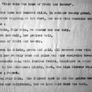 Lyrics to The Woman's Thursday Club of Fair Oak's song: "Fair Oaks the Home of Fruit and Beauty."