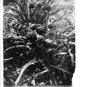 Photo--black and white: Burbank Artichoke plants . Handwritten on back "Burbank artichoke seedlings at Ignacio, Cal. May 12, 1931. The first plant in the foreground bears very large heads of a deep green color strongly tinged with maroon. The ruler standing among the more distant plants is 6 ft. long."