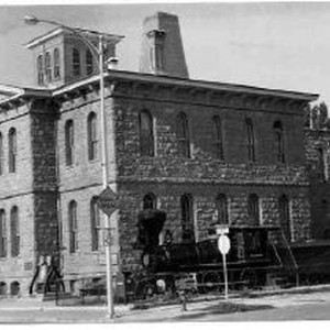 The former United States Mint in Carson City, Nevada is the state's historical museum. The Virginia and Truckee Railroad engine sits to the right