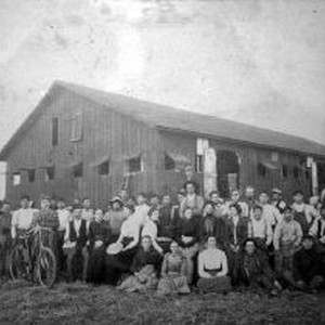 Employees pose in front of the Pike and Kendall Packing House.