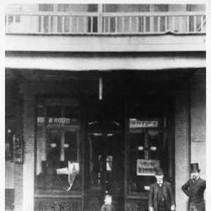 Copy Print: Store front on J Street with unidentified men and a small boy posing in front of the store.