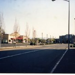 Photo--color: Sebastopol's McKinley Street looking east. Whole Foods store is seen to the left with red awning and the Sebastopol Cinema is seem behind the light pole. Circa 2000