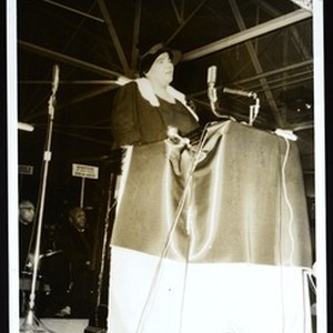 Photograph of an unidentified woman speaking at an unidentified Church of God in Christ conference, [s.d.]. From Corby Bush? [Description English/roman)]